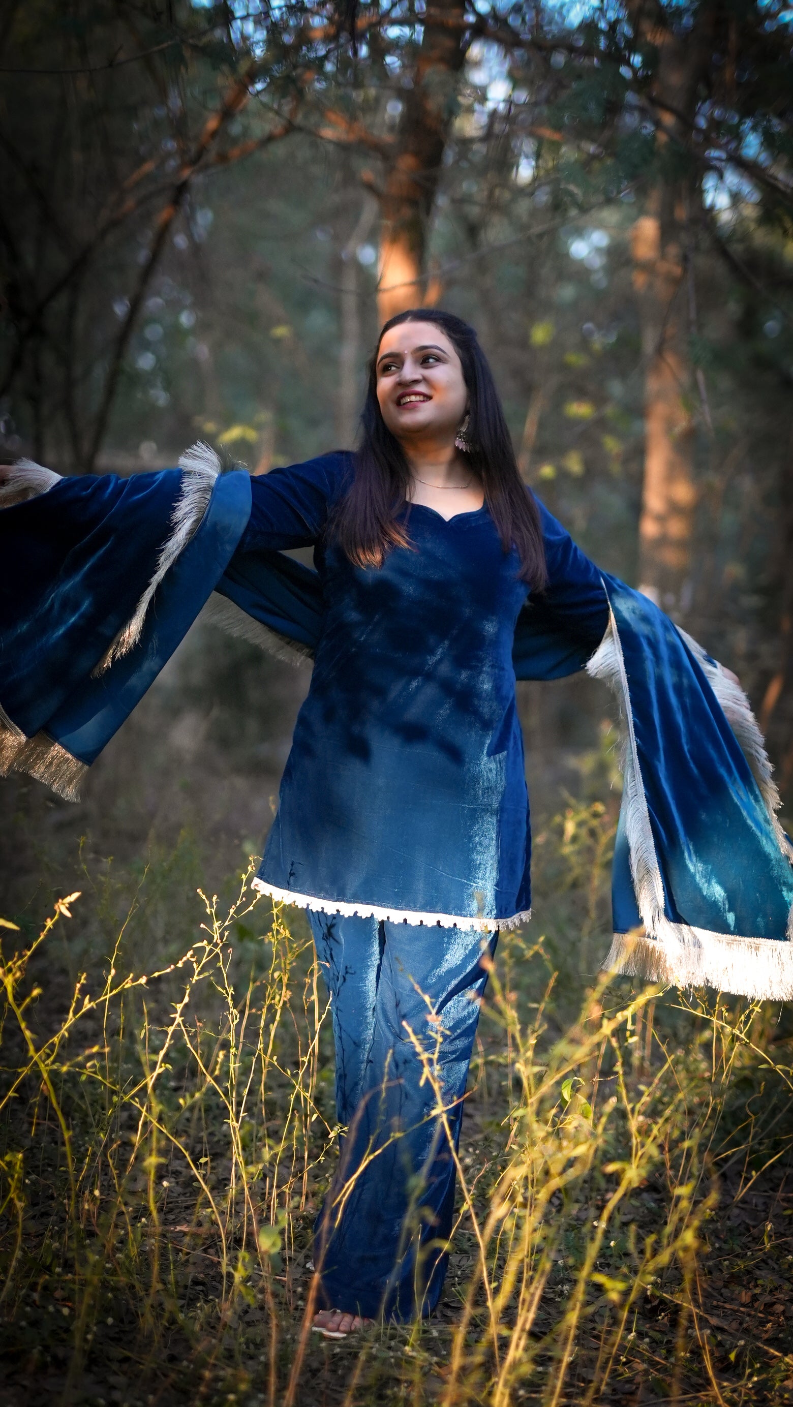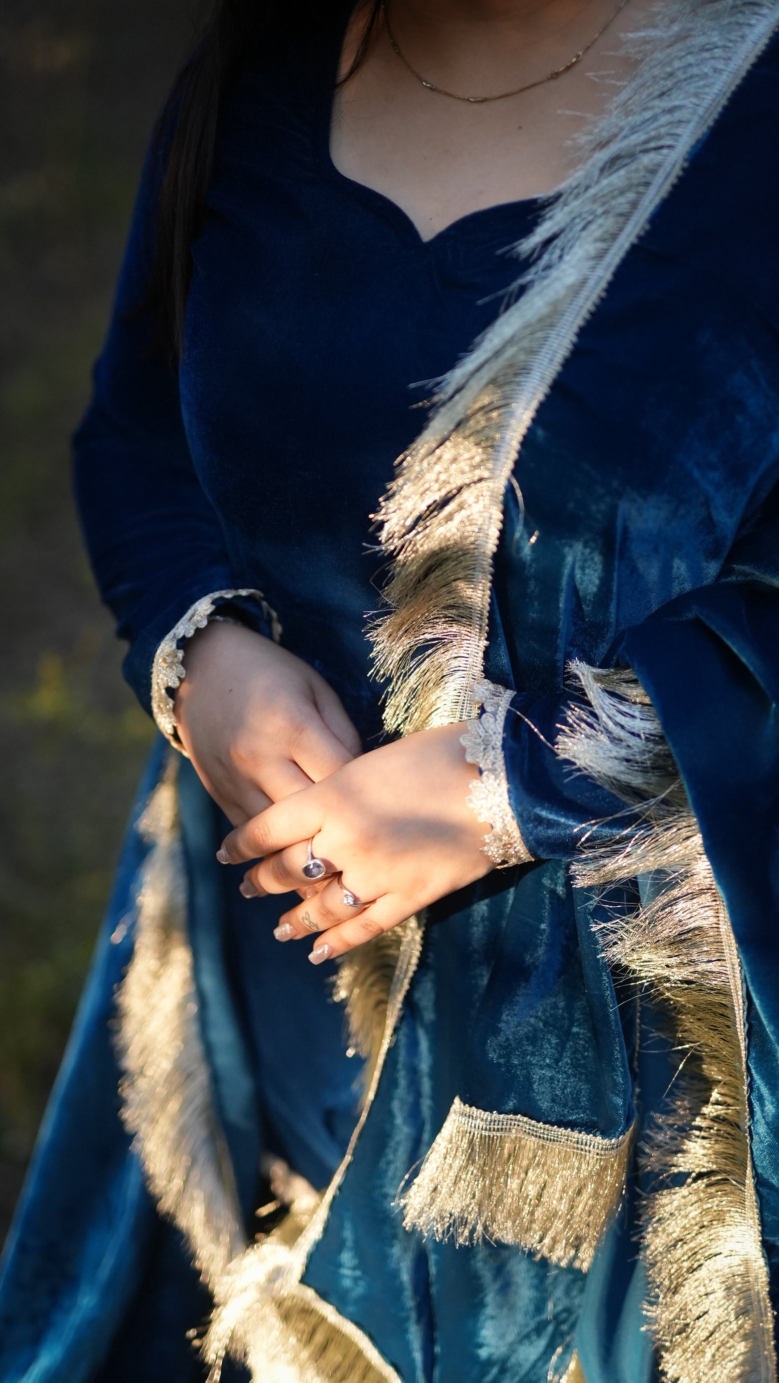 Styling Tip - Style with kundan earrings, a clutch in gold tones and soft curls. let the rich neelam tone out with minimal makeup and kohi rimmed eyes.